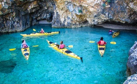 11:15 - Paddling (1,5 h) at the foot of high cliffs and a visit to several smaller caves